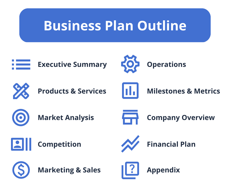 A business plan outline is similar to a template for a business plan. It lists the common sections that all business plans should include.