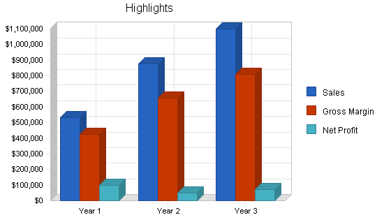 - Sales of £550,000 in Year 1 and £1 million by Year 3.